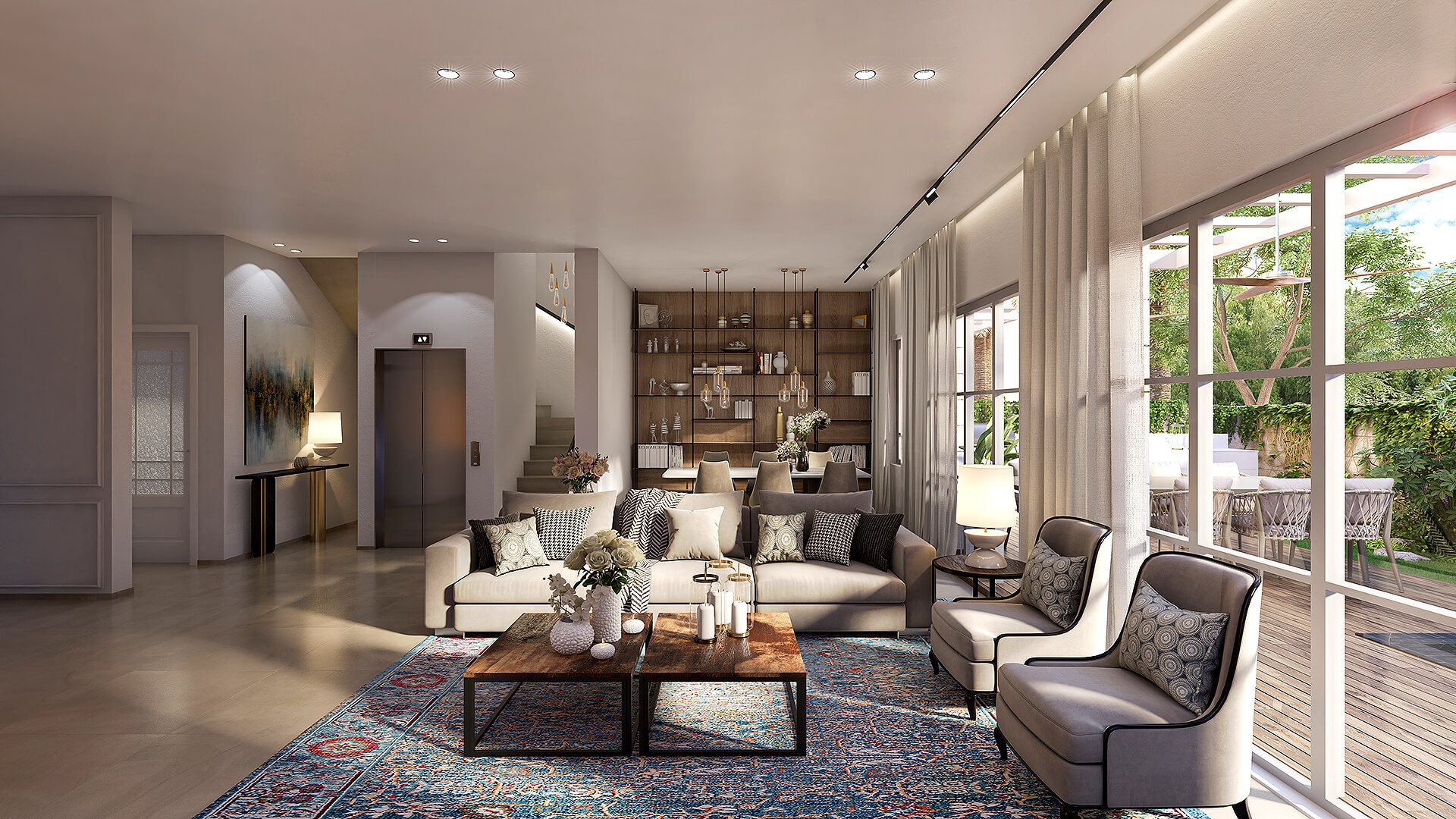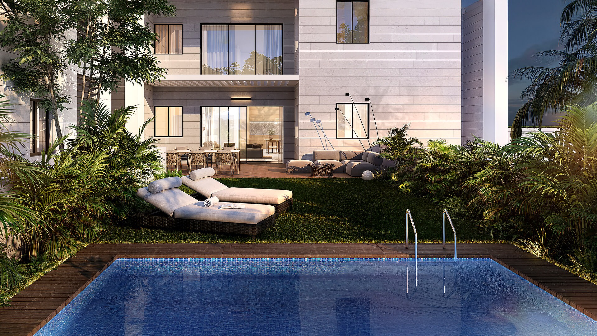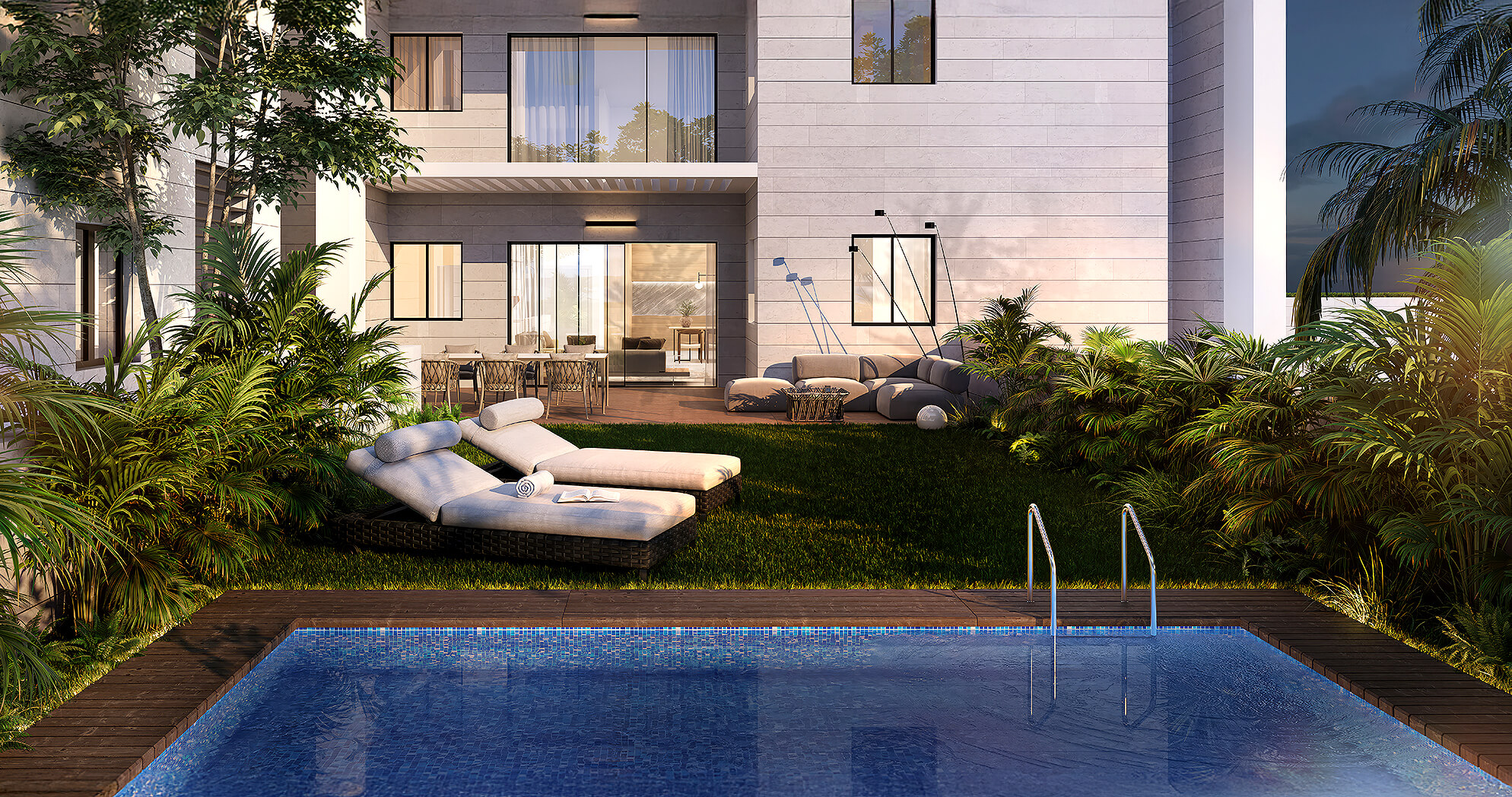 השפה העיצובית נקייה ועכשווית, עם חומרים איכותיים ופתחים נדיבים לאור ולאוויר. המתחם שומר על פרטיות ומציע שילוב נדיר של רוגע, נוחות וקירבה לכל מה שחשוב.