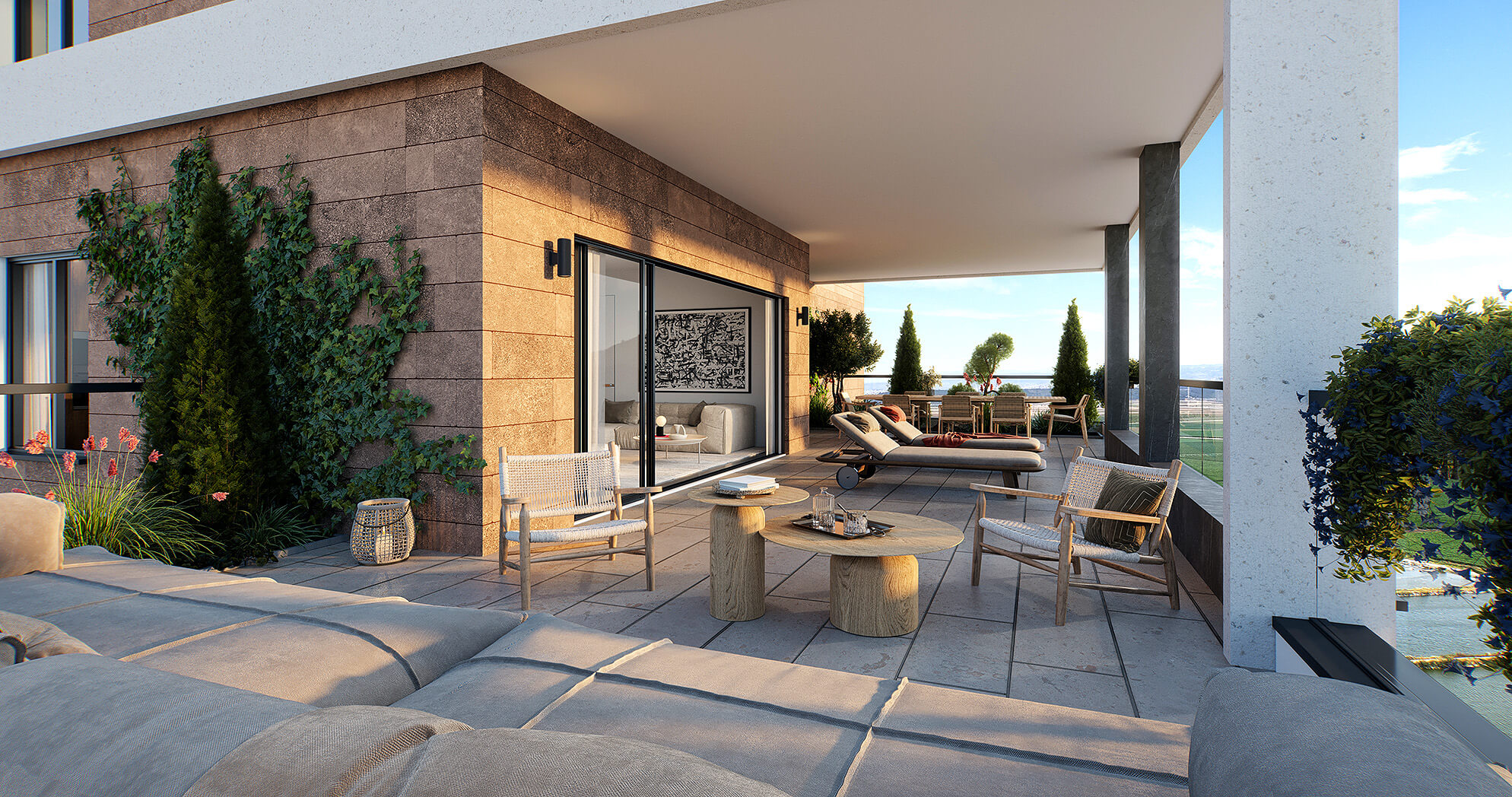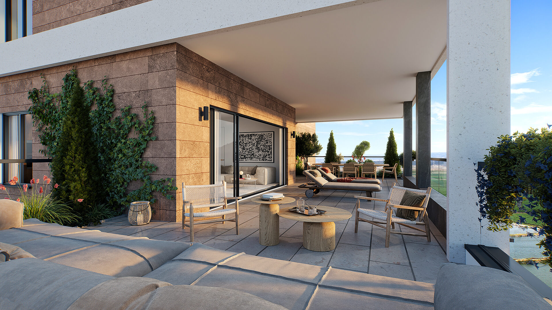 דירות 3, 4, 5 ו-6 חדרים, דירות גן ופנטהאוזים. התכנון כולל מרחב משפחה אינטימי ורחב, חללים מוארים ומרפסות מרווחות הפונות לים ולשמורה.