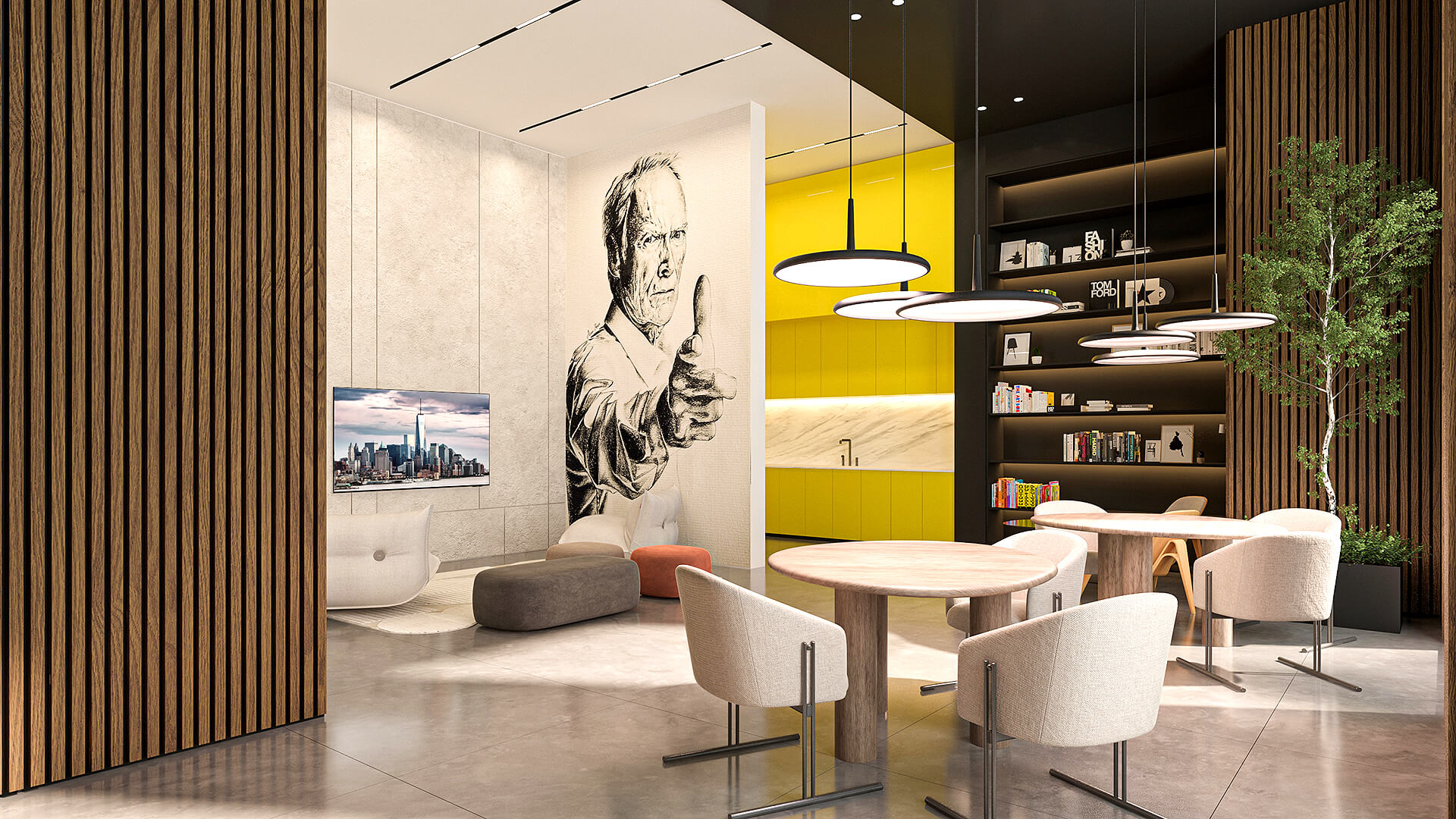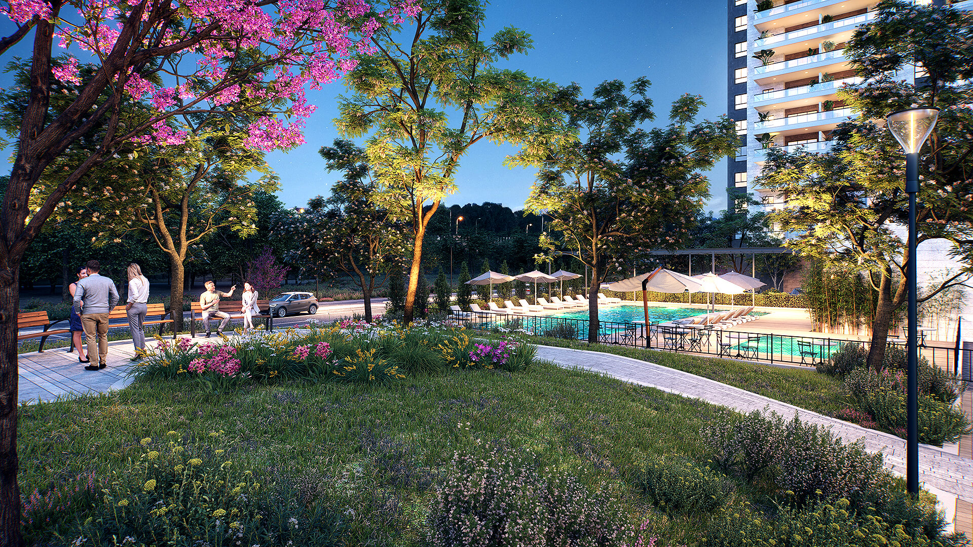 בריכת שחייה פרטית ובריכת פעוטות, מועדון דיירים, חללי עבודה, חדר כושר, אולם קולנוע פרטי וג’ימבורי.