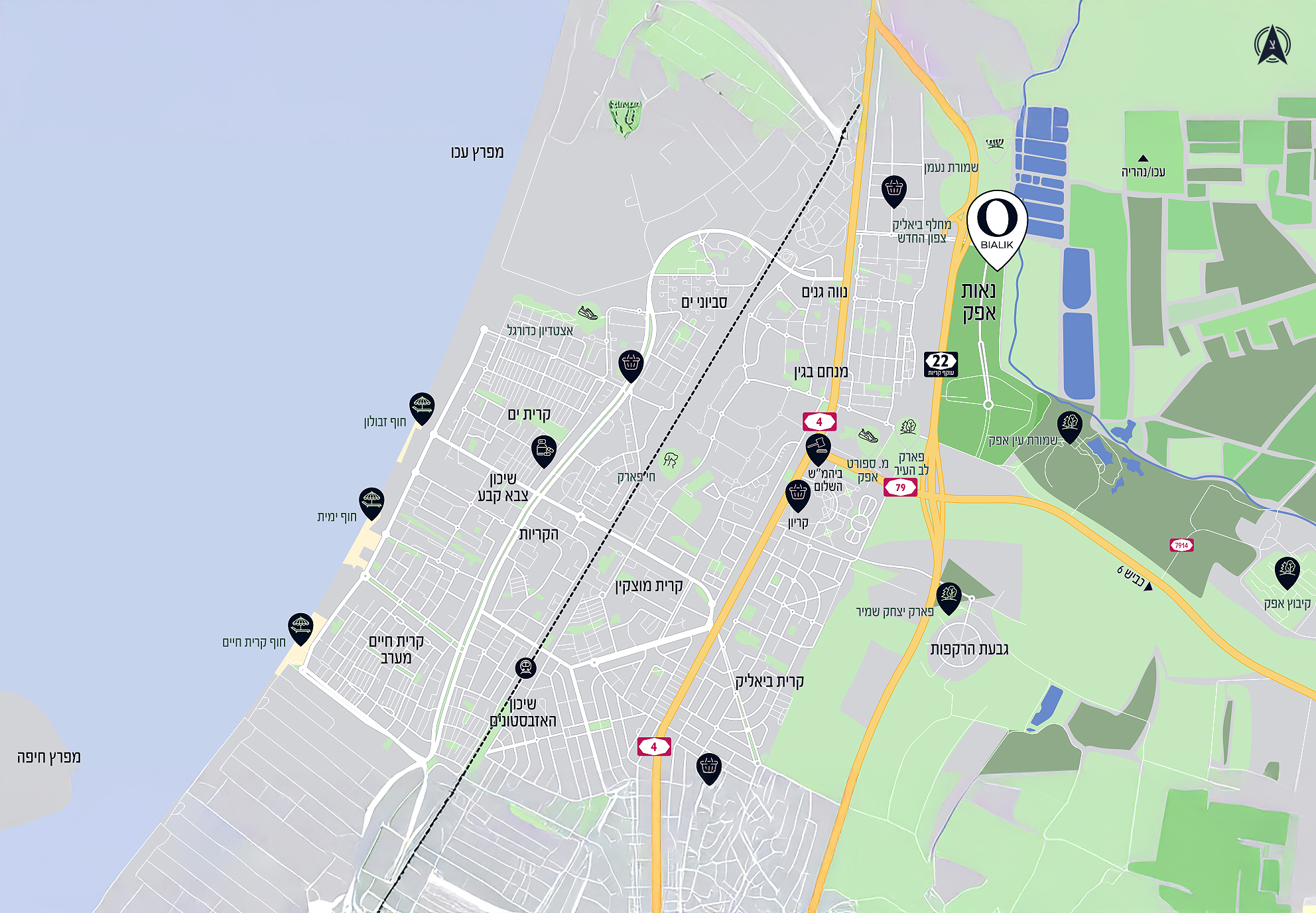 השכונה נבנית באזור הצפון מזרחי של נאות אפק בקרית ביאליק, עם חיבור מהיר למוקדי עניין חשובים באזור הצפון.