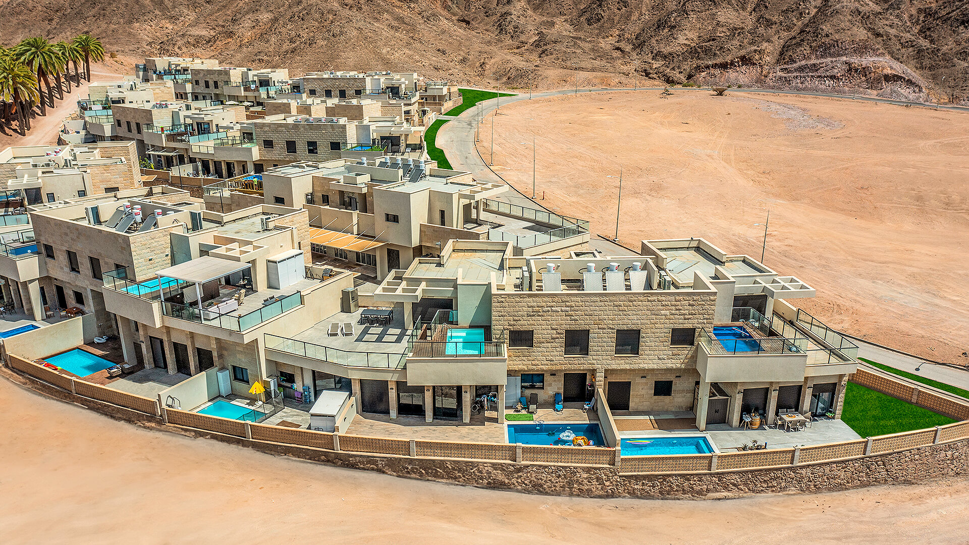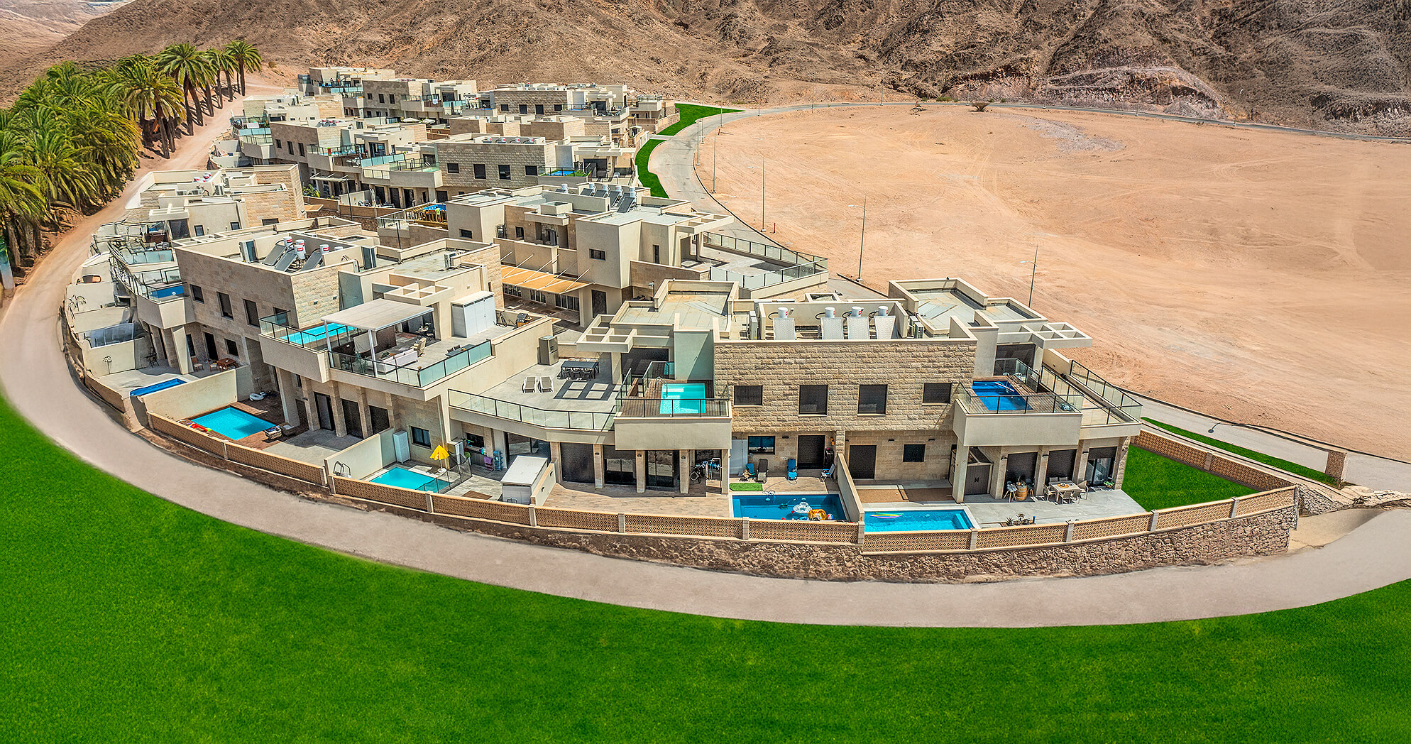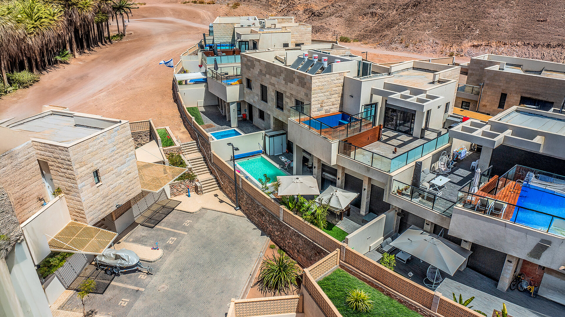 בריכה פרטית כחלק מהתכנון בכל יחידת מגורים, עם פרטיות מלאה.