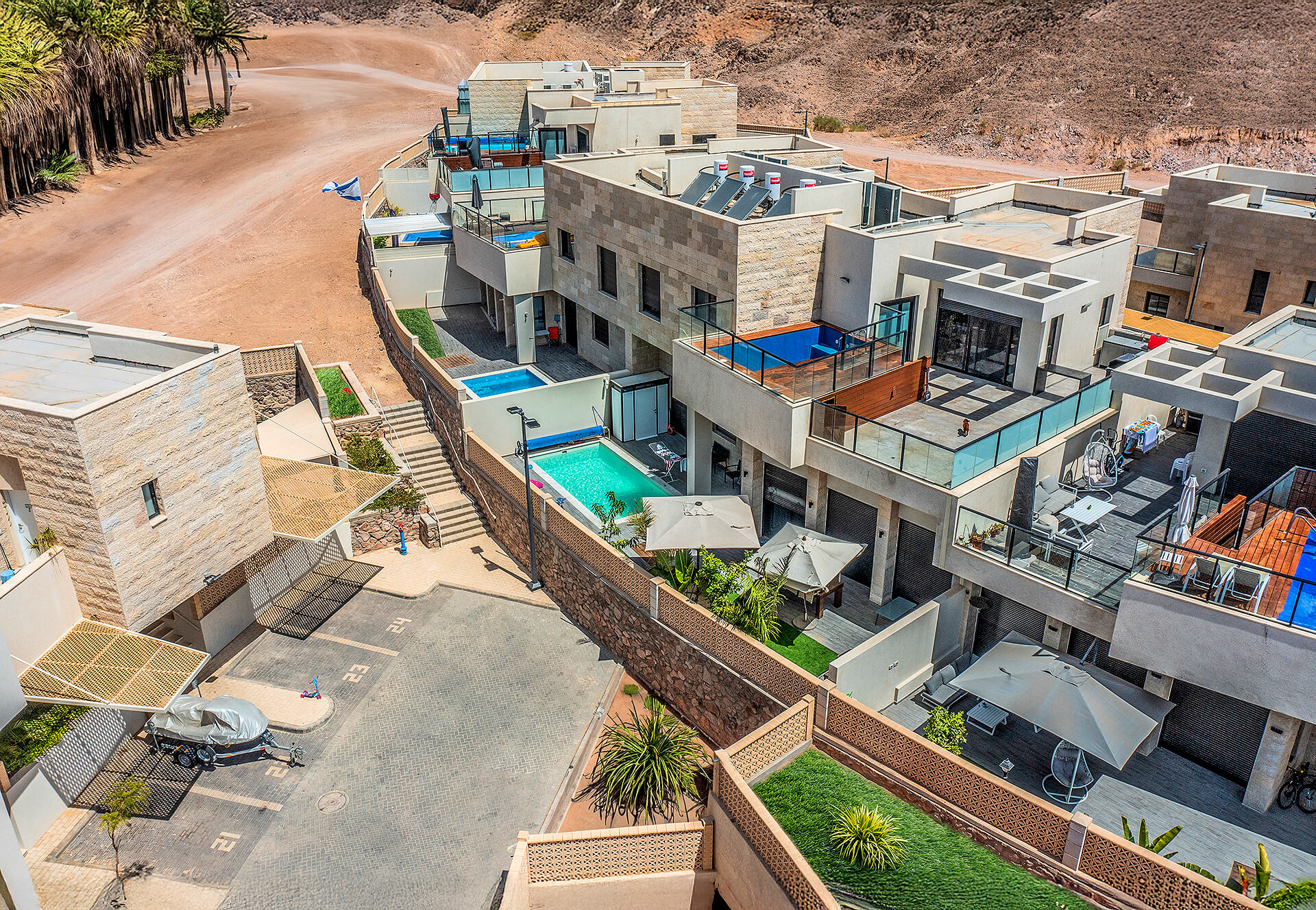 פרויקט מגורים מוקפד הכולל דירות גן ודירות גג, ובכולן בריכה פרטית. התכנון שם דגש על תחושת מרווח, פרטיות, וחיבור ישיר לשטחי החוץ, כדי שהבריכה תהיה חלק טבעי מחיי היומיום.
