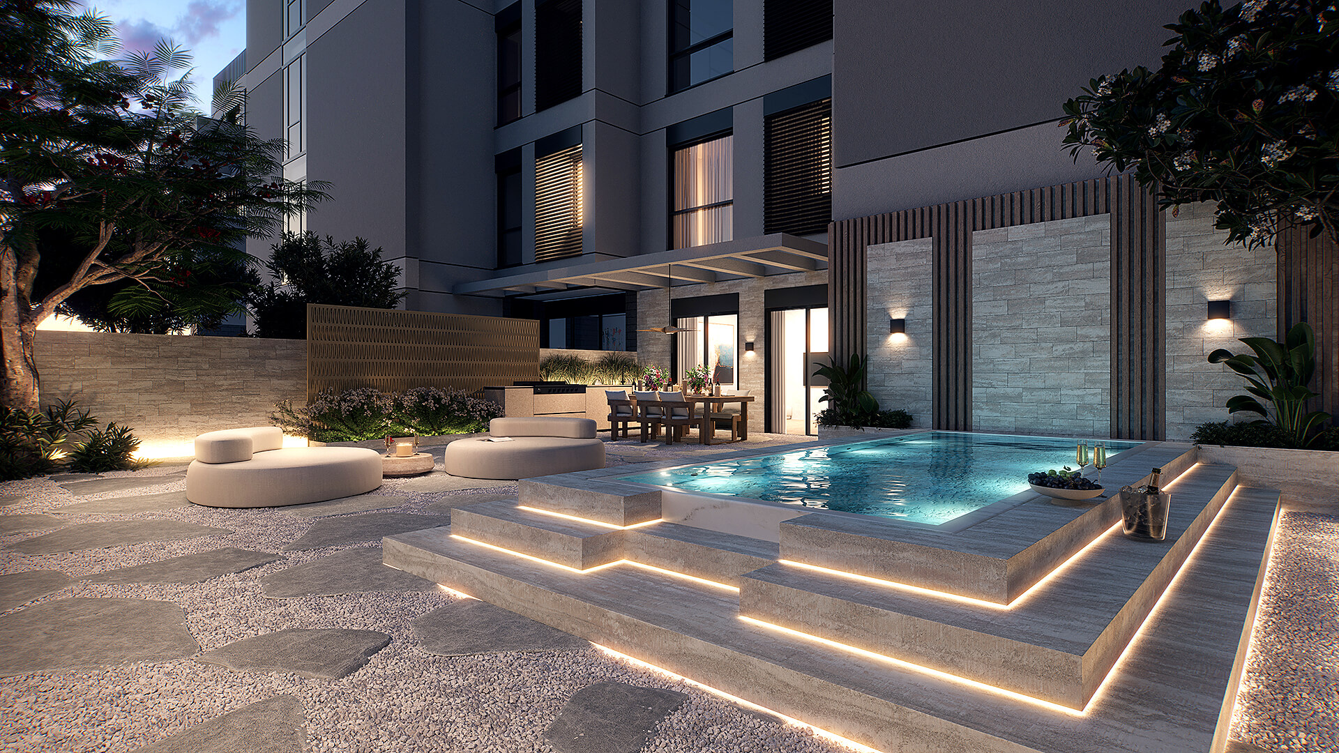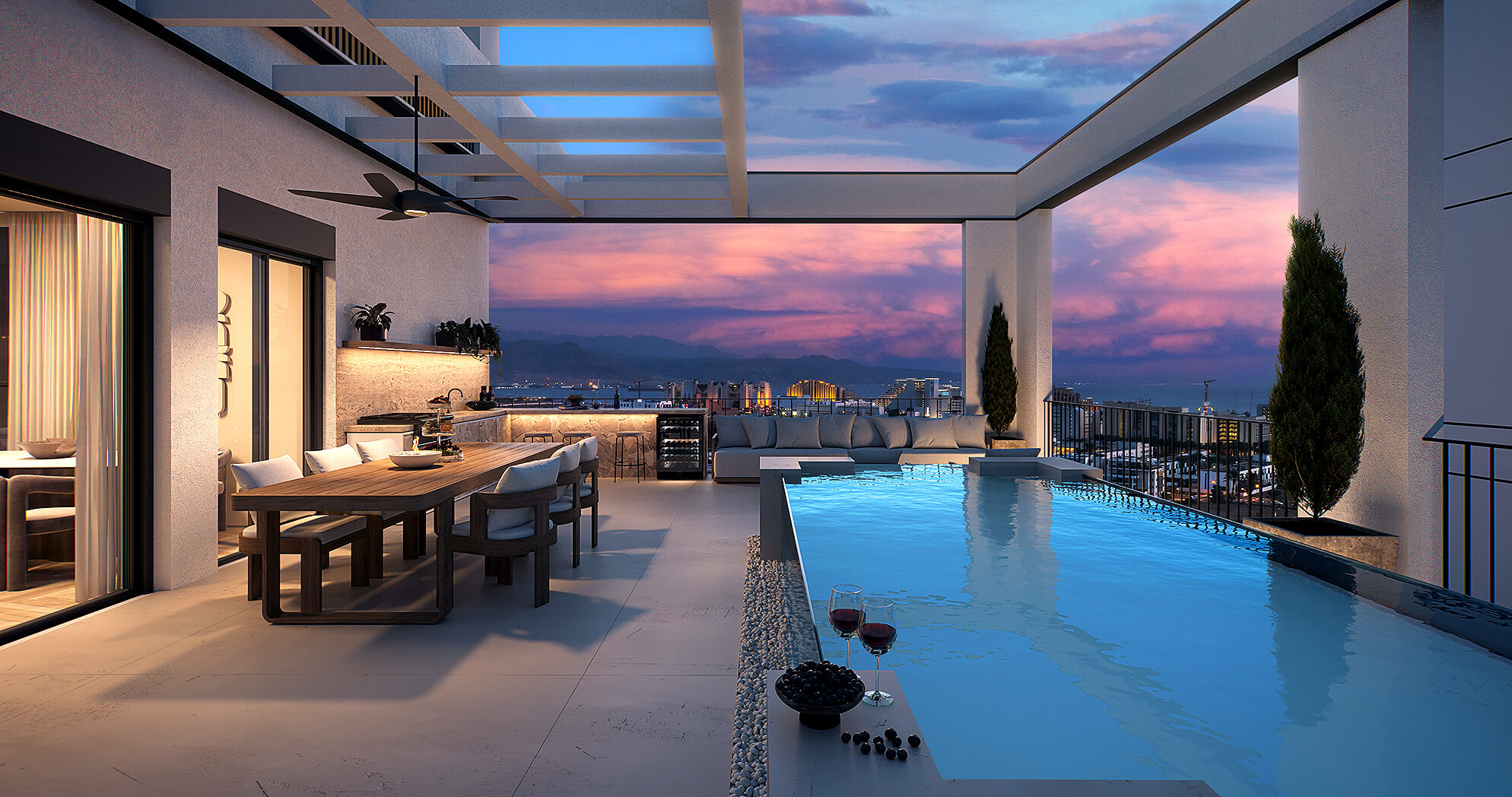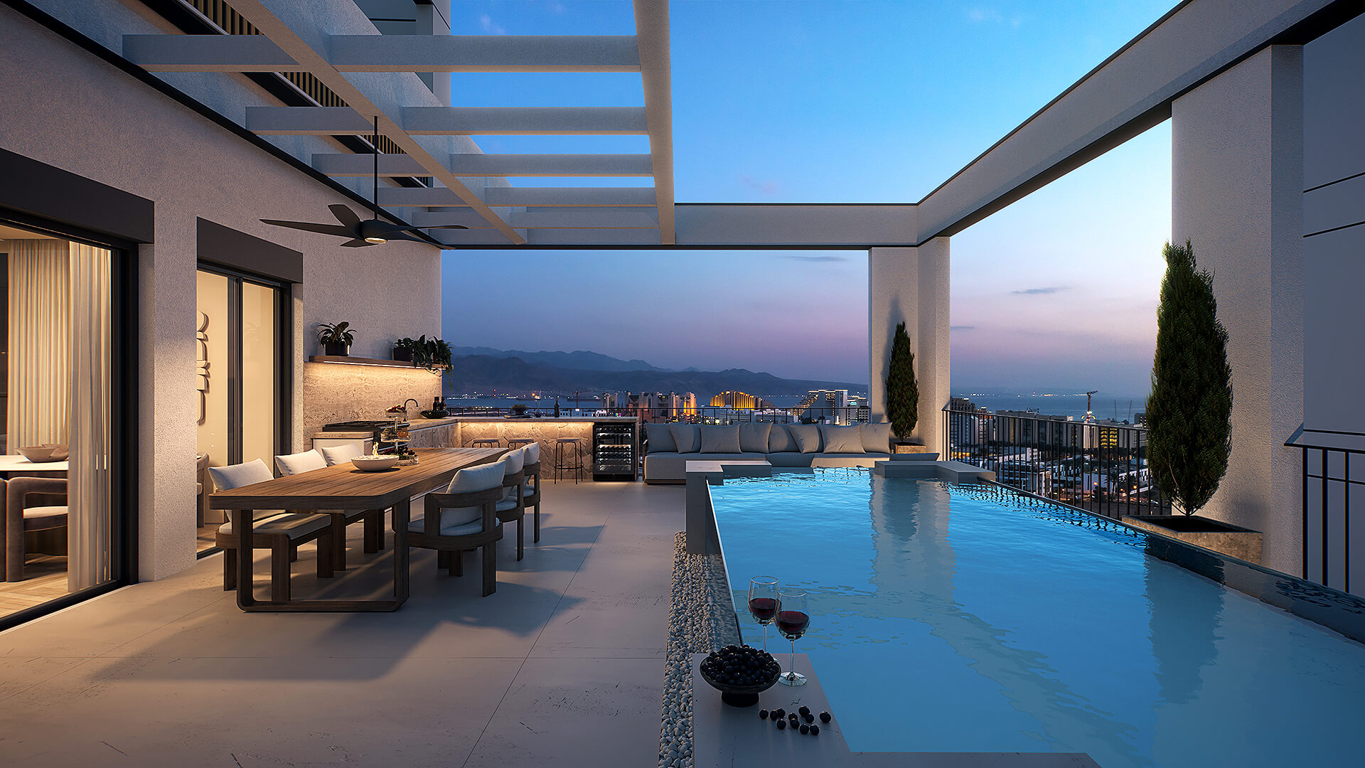 דירות 3–5 חדרים, דירות גן, דופלקסים, מיני-פנטהאוזים ופנטהאוזים - בכולם אפשרות לבריכת שחייה פרטית