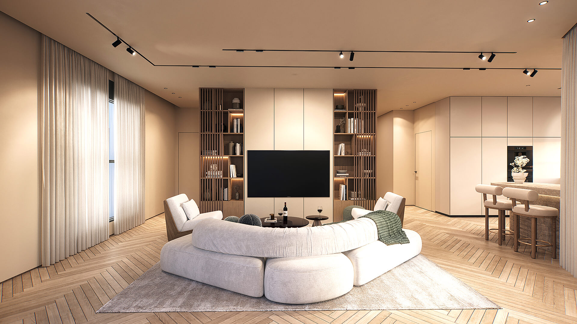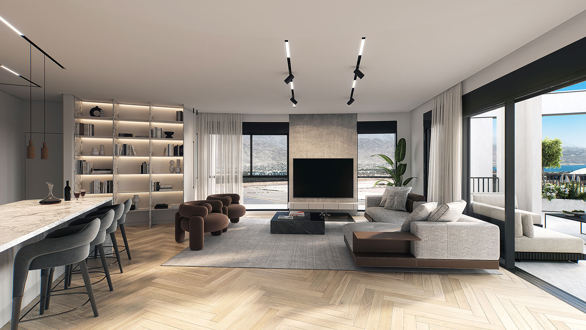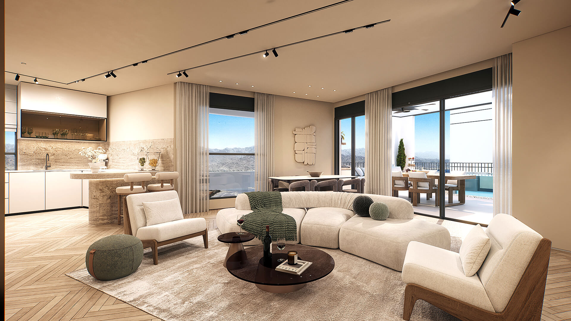 העיצוב הפנימי של הדירות נשען על אותו קו אדריכלי: חלים מאוזרים, זורמים ומזמינים, לצד פונקציונליות גבוהה, המדגישה קלילות ונוחות בכל פרט.